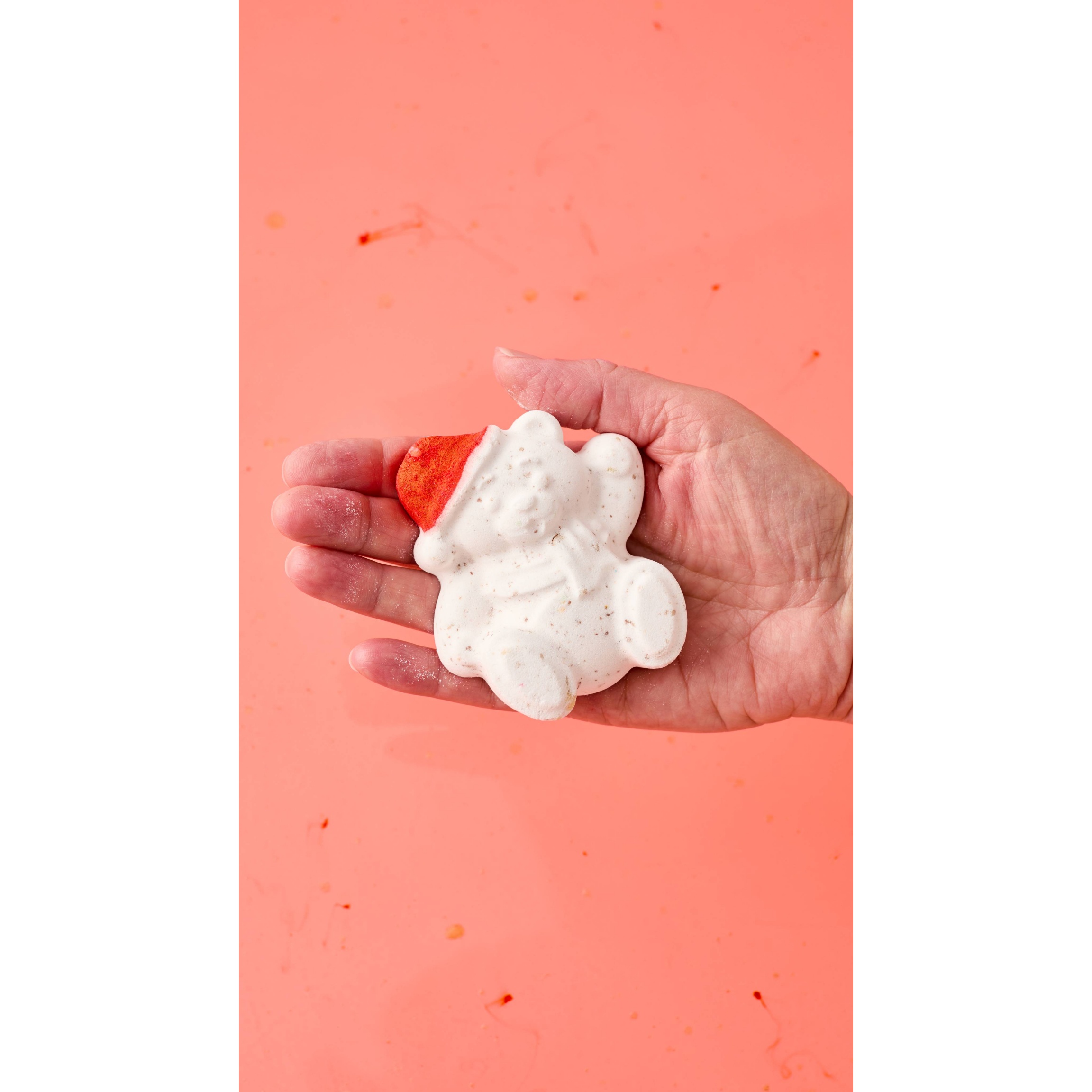 Run a bath and drop your festive friend in the water. Top tip from Product Inventor Gary: as the cocoa butter pieces melt in the water, scoop them up with your hands and rub over your skin. You’ll be as soft as a teddy bear.