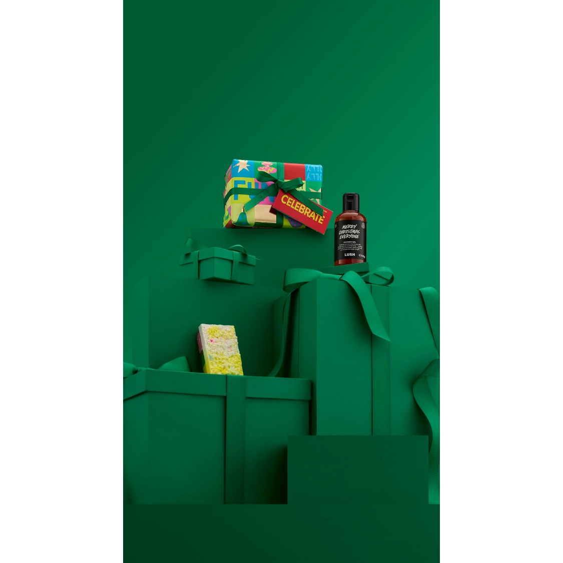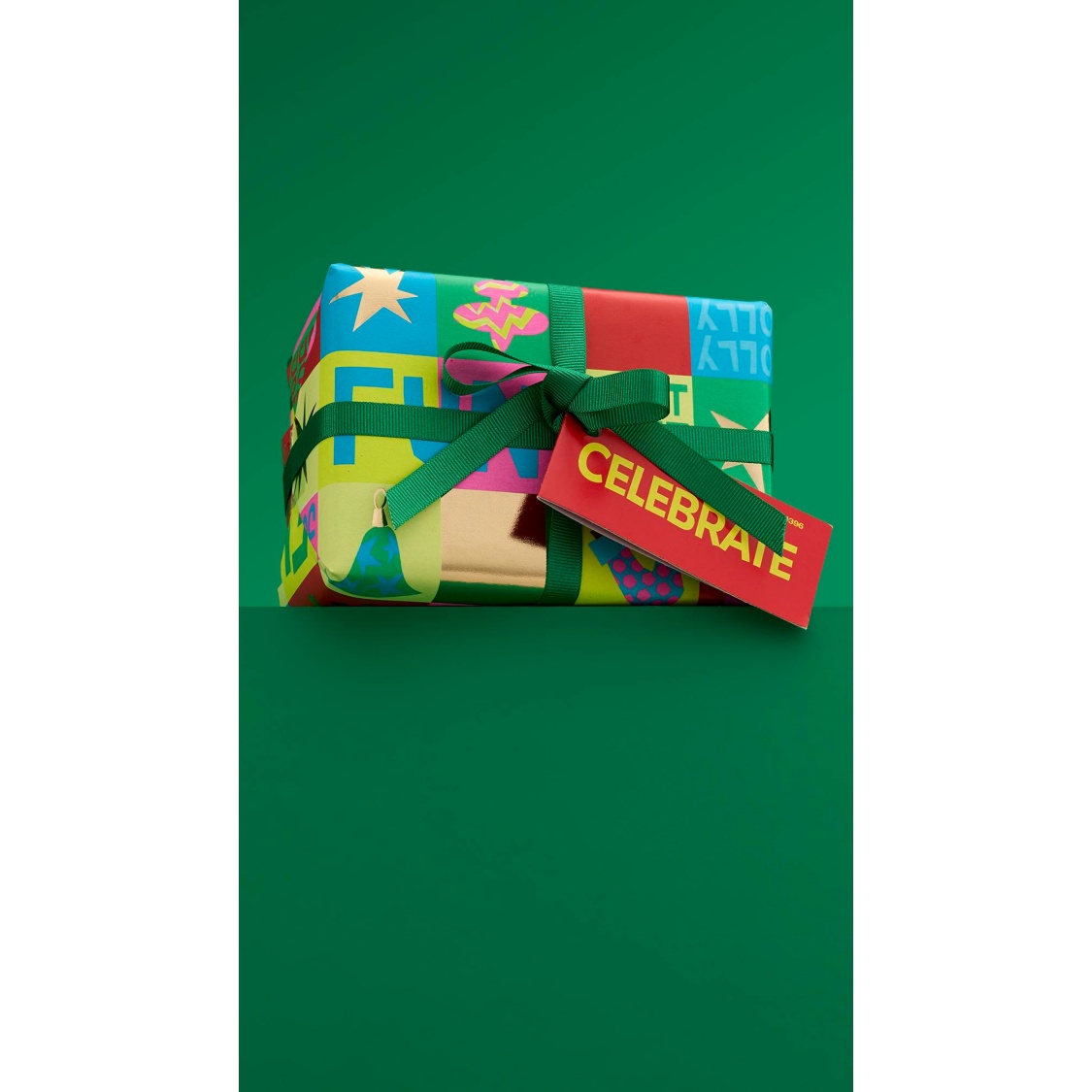 This flurry of fun was designed by Lush Gifts Creative Artworker, Sarah Wall, who created “A vibrant and playful design featuring a lively collage technique, bursting with colour and shimmering foil accents!”