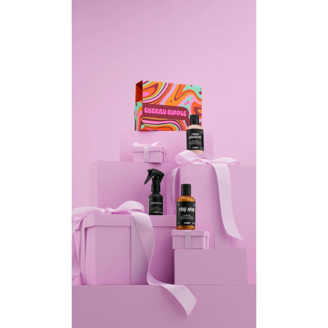 Erin Stephen from the Lush Talent Pool designed this gift with the inspiration of “all things ooey, gooey and delicious. I wanted the design to blur the lines between bath art and food art! It also has a strong ’70s vibe.”
