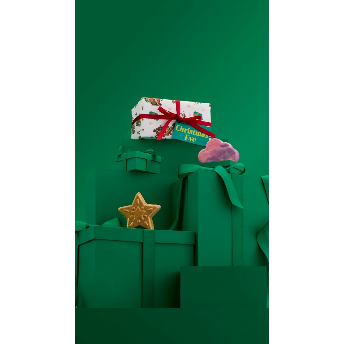Kate Ellison, Lush Gift Designer, describes this gift as, “A lovely traditional Christmas design ready for the most exciting day of the year. This gift design was inspired by the excitement of waiting for the big present opening on Christmas Day with Santa’s sleigh filled with gifts, Christmas trees and glistening stars to remind you of the night before Christmas and the excitement it brings. It uses beautiful watercolour illustrations and a festive colour scheme.”