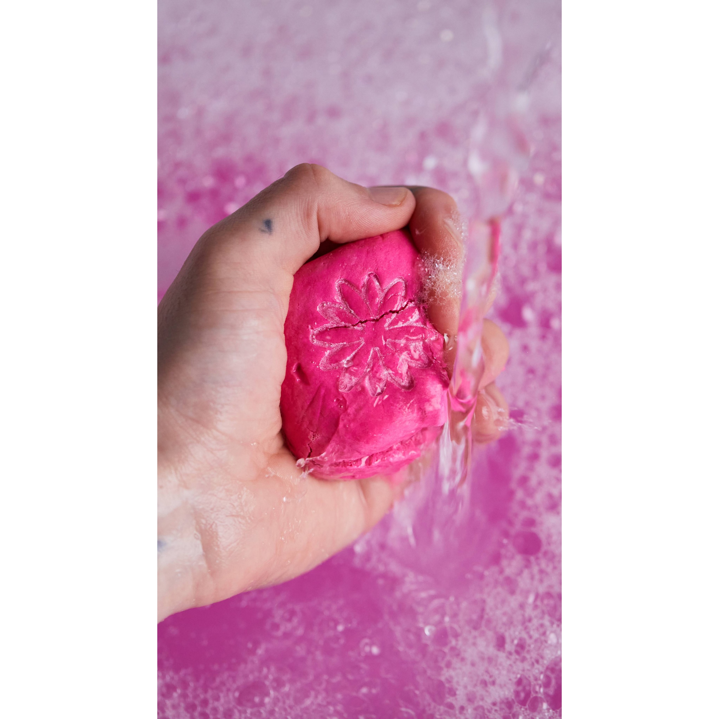 Crumble this delightfully sweet treat under running water for mounds of candy floss bubbles and moisturising pink water.