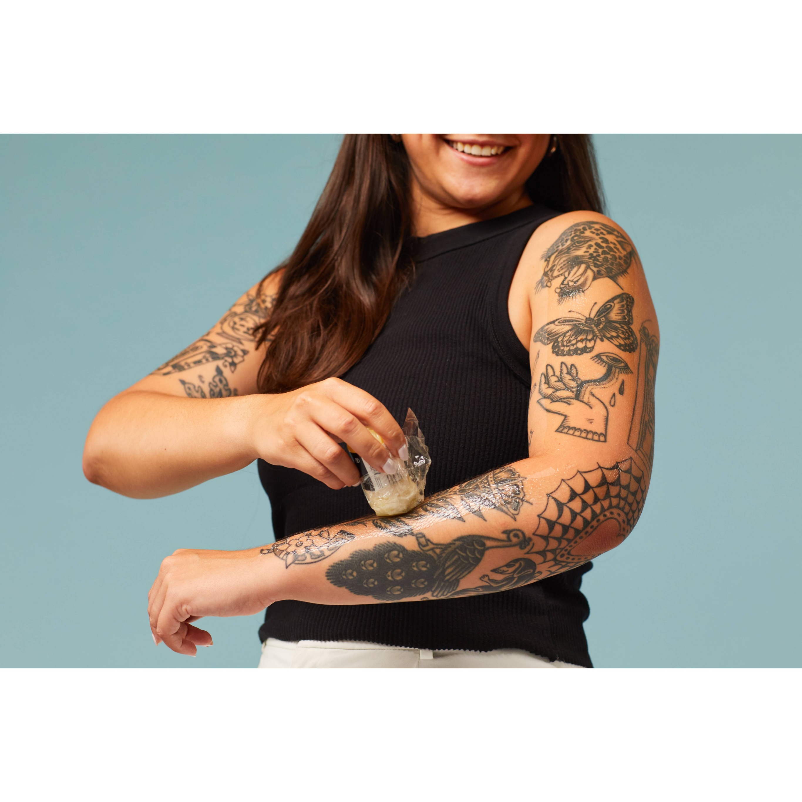 Well, this bar is supreme. It moisturises like a dream. Why, it’s tattoo brightenin’. The sunny and cheerful neroli, ylang ylang and orange flower fragrance will put a smile on your face, while if you’ve got ink, a glide of this bar over your tattoos really makes the colour and detail pop.