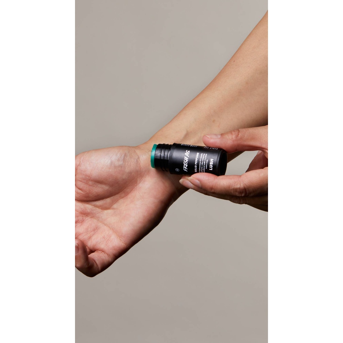 Push up gently, apply to your pulse points and massage in. Use your wrist to gently push the perfume back into its packaging.