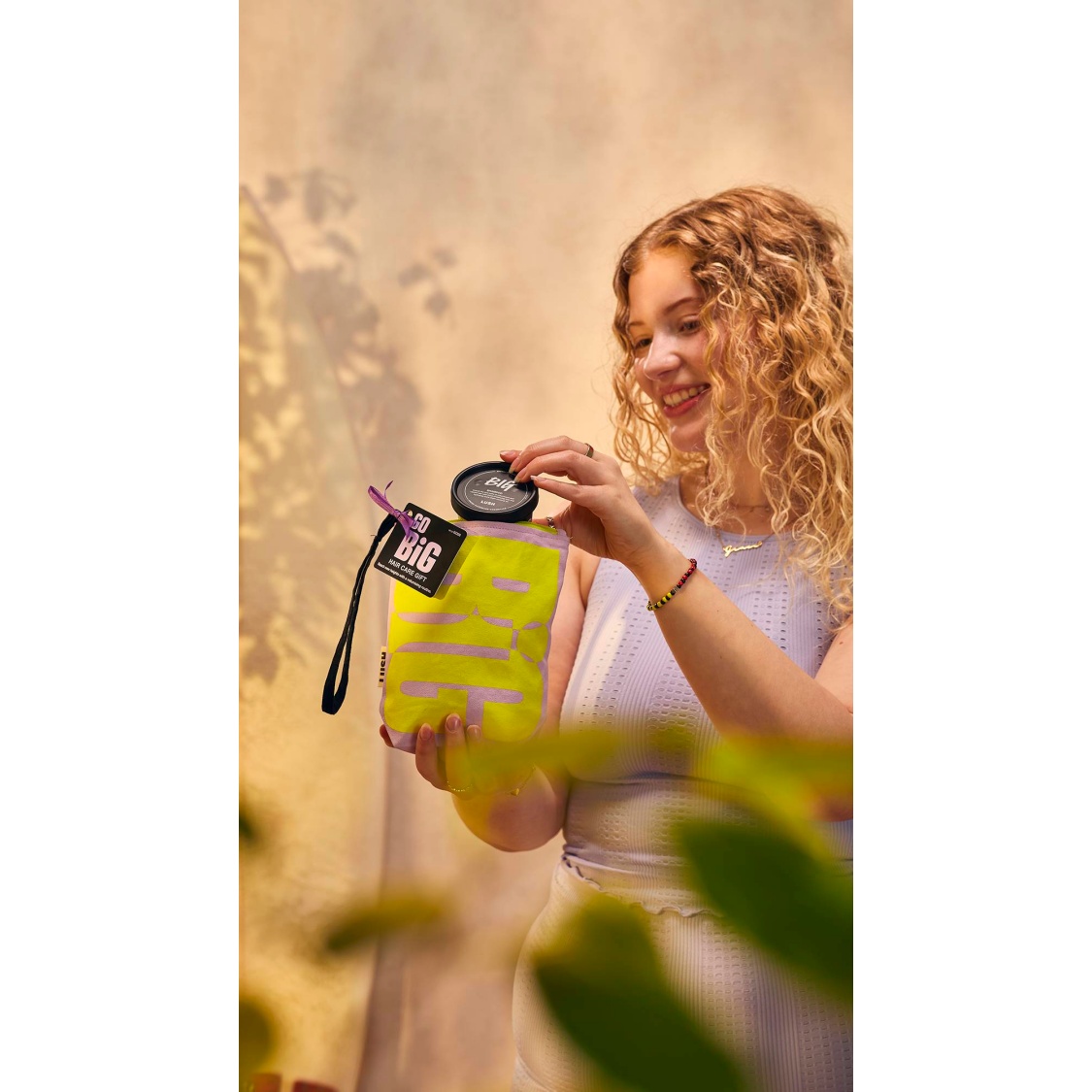 All packaged up in a reusable organic cotton pouch with a big, bold design.