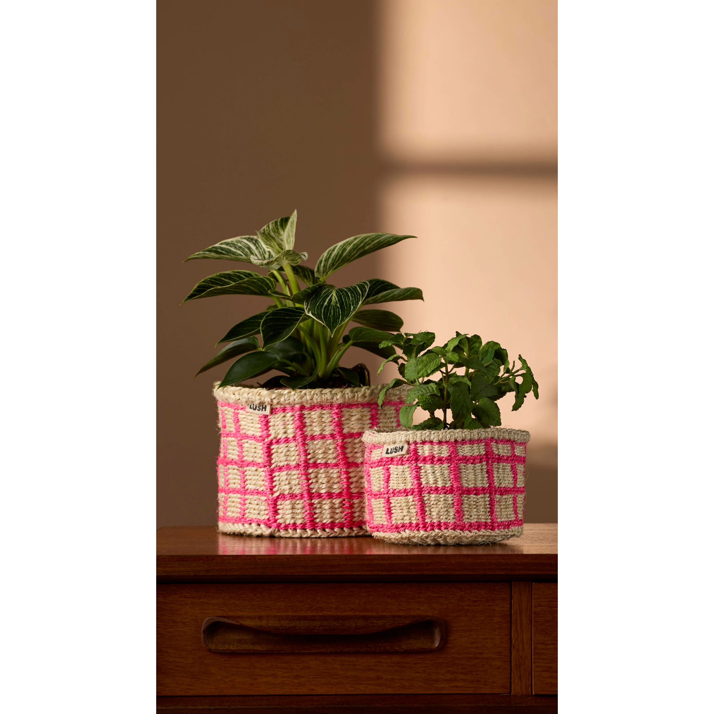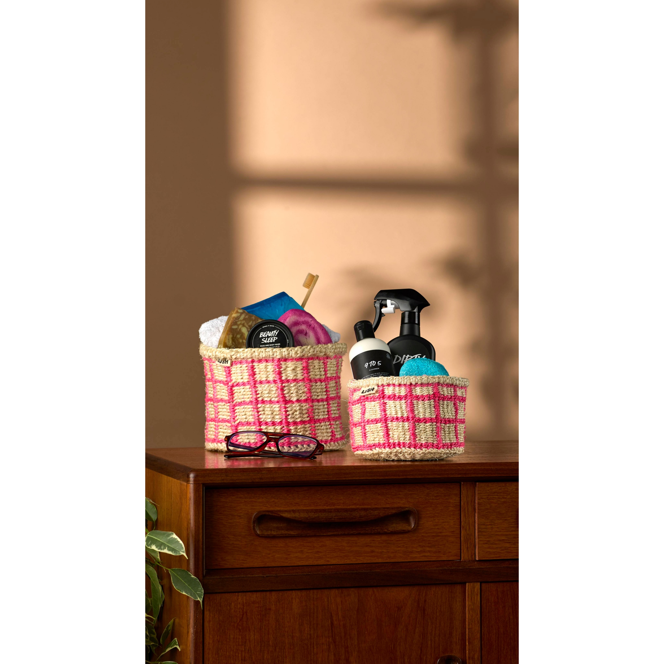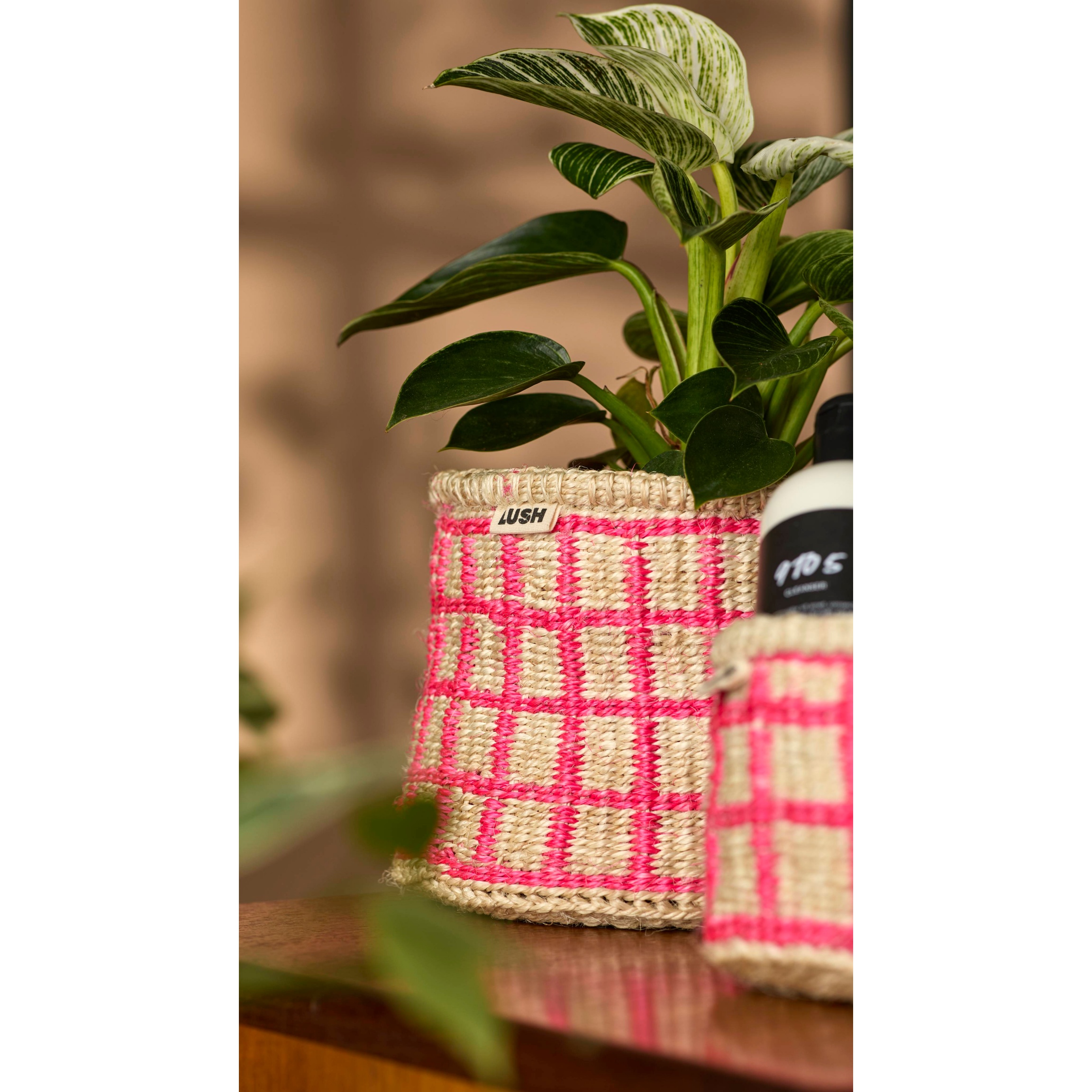 This basket is made from organically grown sisal fibre from the agave plant, and was handmade in Kenya. Lush is working in collaboration with The Basket Room – a business bringing together women’s basket-weaving collectives showcasing traditional weaving and dying techniques.