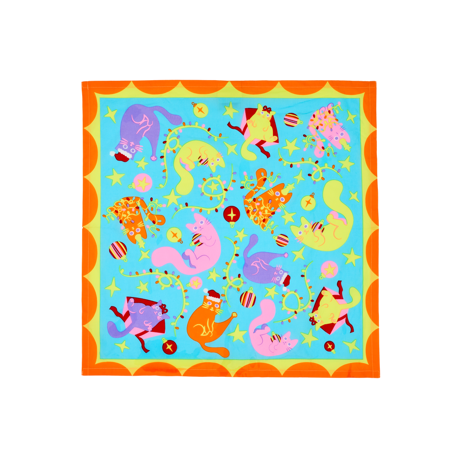 Designed by our very own Grace Cole, who was inspired by “the chaos and charm of cats at Christmas – tangled in lights, batting at baubles, and claiming every gift box as their own. It’s a little messy and full of holiday mischief.”