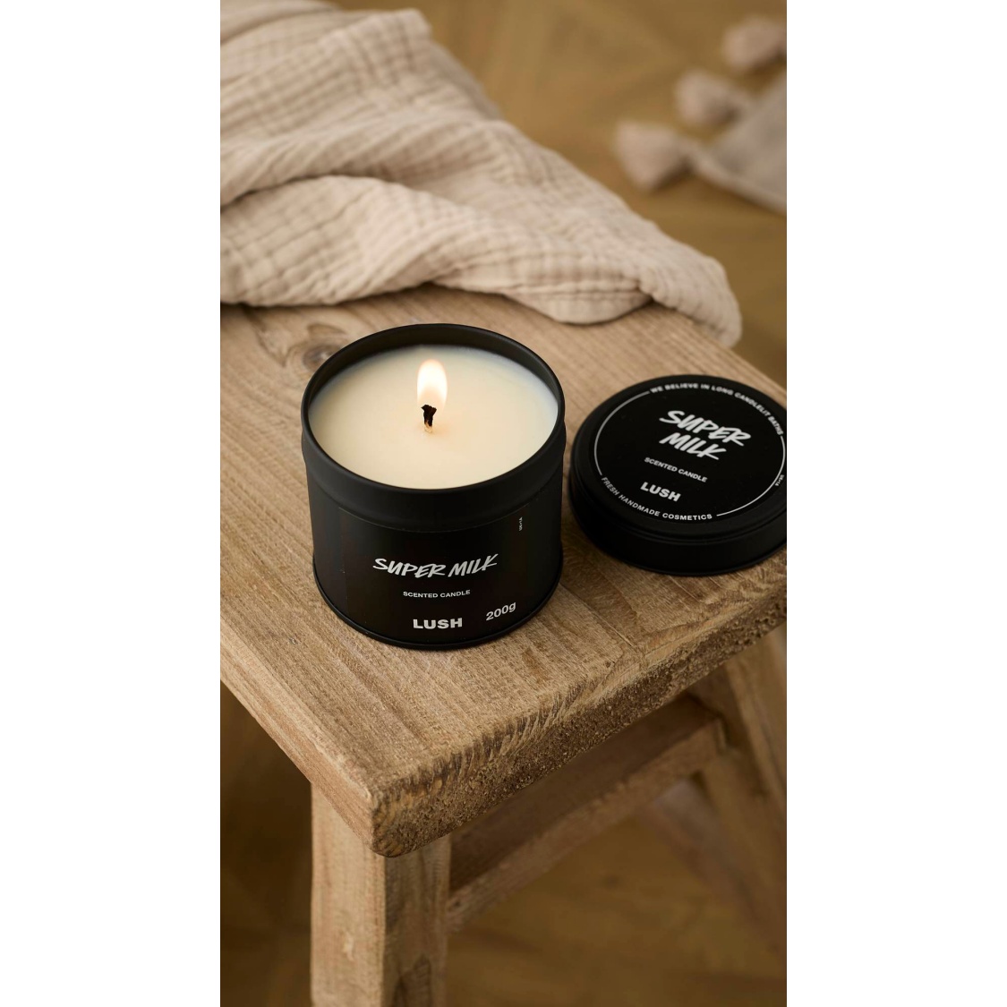 – 100% recyclable or reusable black tin, now with a lid so you can keep the fragrance locked in when the candle isn’t lit.