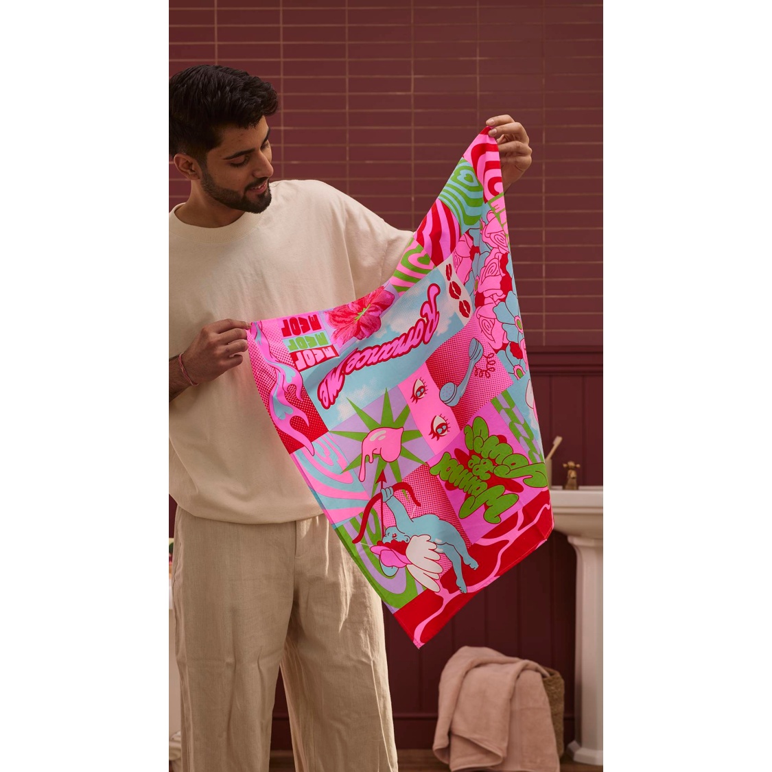 Designed by Artist, Ellen Porteus from Melbourne, Australia. Ellen’s unmistakable artworks are an expression of her world: combining eye vibrating colour, cartoonish maximalist compositions and play-on-words.