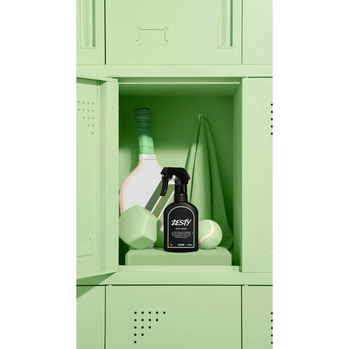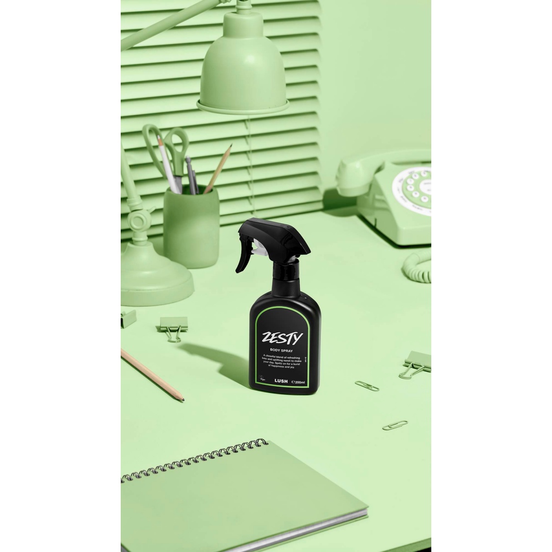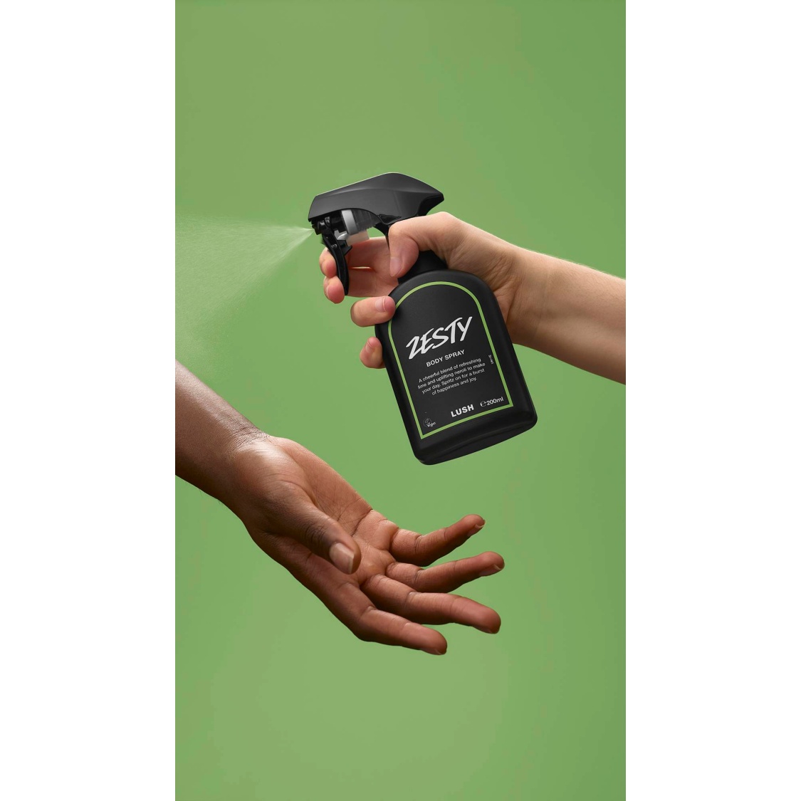 This bottle is made from 98% recycled plastic, minus the label which we’re working on. The trigger is made from a mix of virgin and recycled materials. Bring your empty body spray back to a Lush store for 50p off your shop.